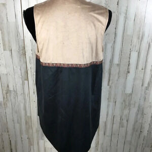 Brand new Bo Bel brand boutique two tone tan and black vest. Has tribal style design in the center, open front. 90% Polyester, 10% Spandex. Faux suede. All items are from a pet free, smoke free home and will ship same or next day.
