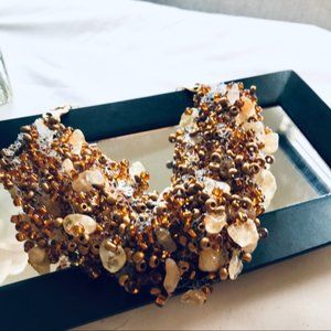 BRAND NEW BoHo Convertible Handmade Beaded Necklace/Bracelet – a testament to craftsmanship and style. Meticulously made in Brazil with great quality imported materials, this versatile accessory is a true expression of BoHo, beaded, handmade jewelry. The adjustable design allows it to be worn as a chic bracelet, showcasing a harmonious tan/bronze hue with gold hardware. With a length ranging from 9" on the tightest to 13" on the loosest setting, it ensures a perfect fit for any occasion. Embrace the subtlety of minimalist beads and elevate your style effortlessly with this unique piece. Make a statement with the new and redefine your fashion journey!