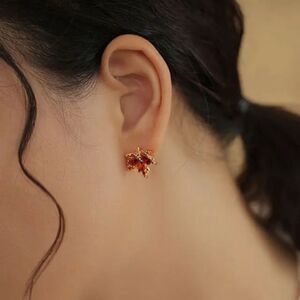 ππ π BoHo Elegant Red Maple Leaf Gold PlatedβStud Earrings π