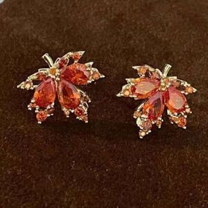ππ π BoHo Elegant Reddish Brown Maple Leaf Gold Plated Stud Earrings π