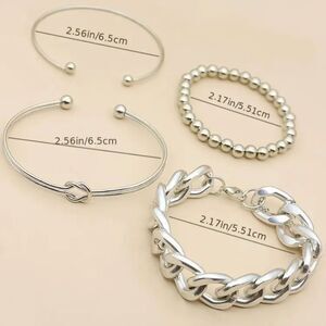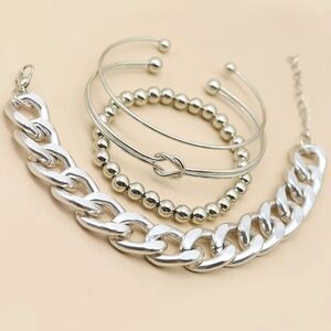 ✨🆕✨BoHo Cute Silver Tone 4 pcs Chunky Punk Style Bracelet Set✨