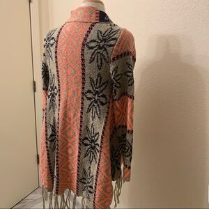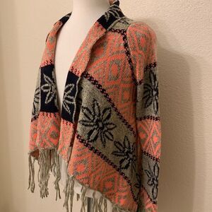 BoHo Long Sleeve Sweater Wrap/ Tangerine Gray and Black with 5” Fringe S/M