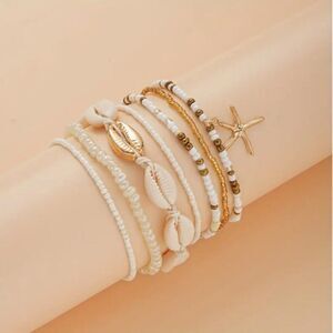 ✨🆕✨ BoHo Sea Shell 🐚 Pearl 7 Pcs Layered Anklet Bracelet Beach Jewelry ✨