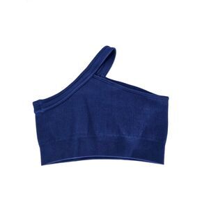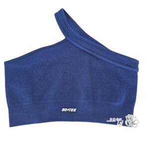 Bo+Tee One Shoulder Sports Bra in Blue Medium