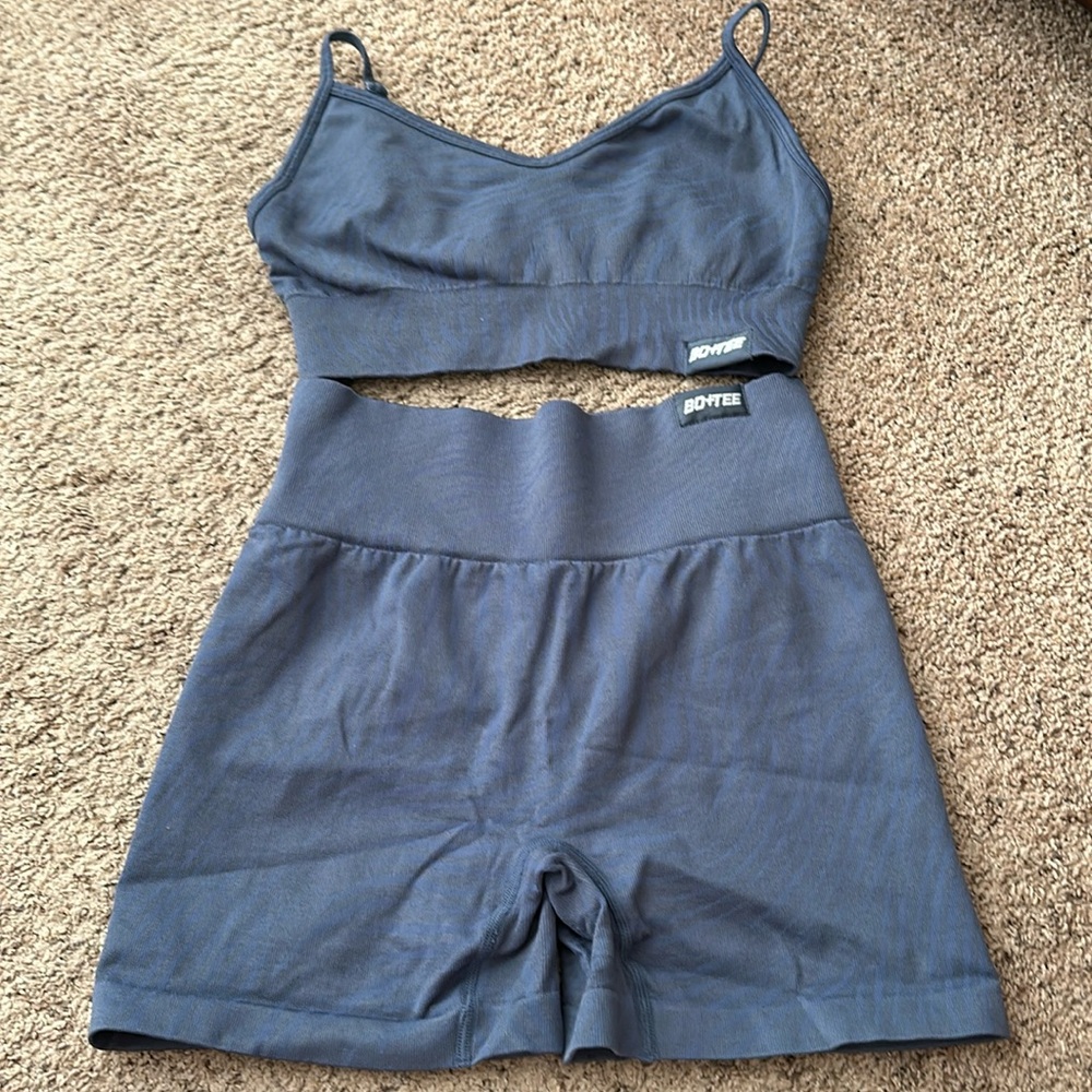 Bra and scrunch shorts Gently used No flaws No padding