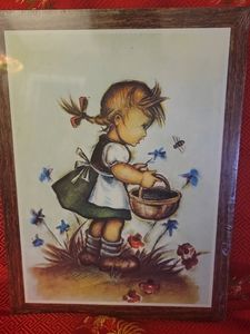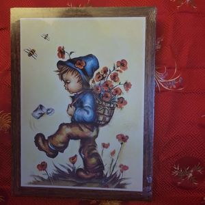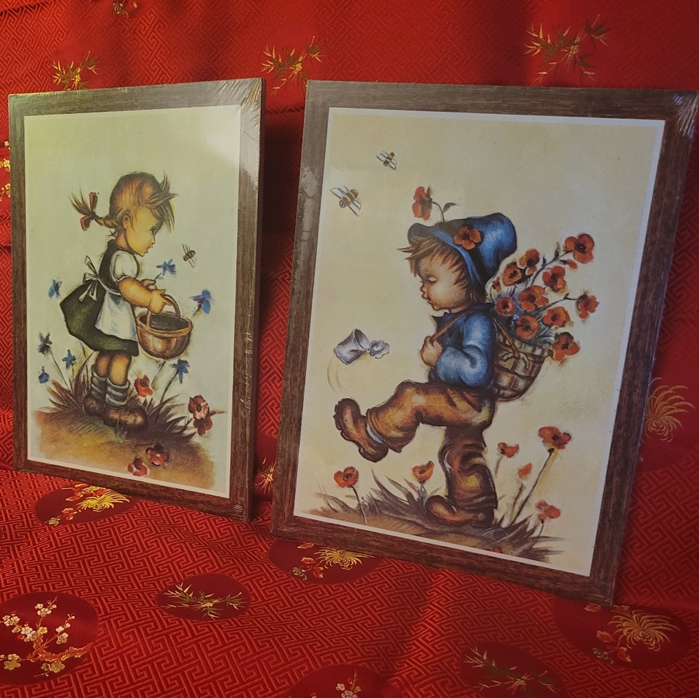 Two board prints of Hummel Boy and Hummel Girl. In great condition. You'll see some glare of lights in the photos, it's the original plastic on the picture frames.