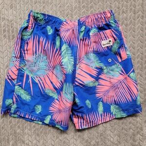 Boardies Apparel Men Swim Shorts Fern Leaves Print Drawstring Medium 7” Tropical. Condition is Pre-owned. Still in really good shape. No rips, stains or tears. Take a look at the pictures (zoom in) and measurements please. Thanks for looking. Enjoy the rest of your day. Shipped with USPS First Class