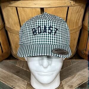 Boast USA Logo Gingham Forest Green Checkered Snapback Hat Mens One Size OS NWT