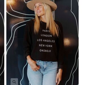 Boat House Apparel World Traveler Black White Ribbed Sweatshirt Size Medium