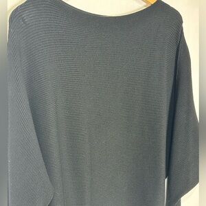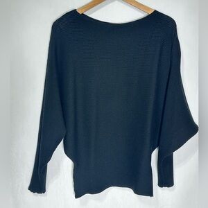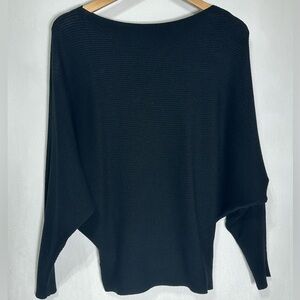 Boat Neck Batwing Sleeves Dolman Knitted Sweater - black - one size