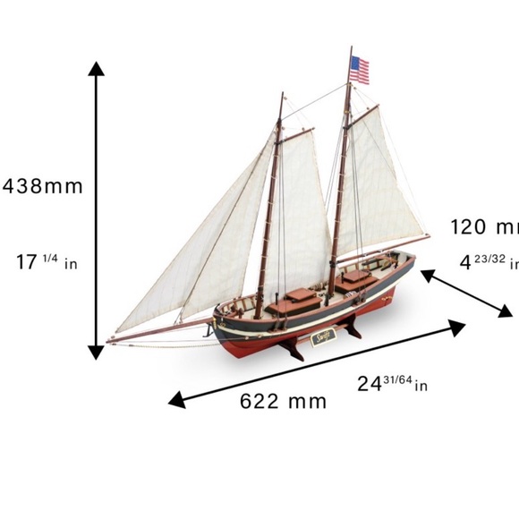 Boat model Swift 1805. This is not a model for beginners as it is very complex. The completed links is going to be 21 1/4 inches long the height is going to be 18 1/8 and the beam for in 1/3 inches. The model was purchased in 1980 all the Packages are complete. Non-smoking home