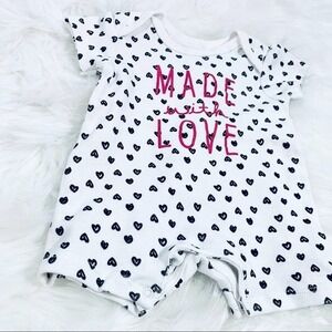 Bob Bebe Made with Love Romper 0-3 Months Infant Baby Girl Hearts White