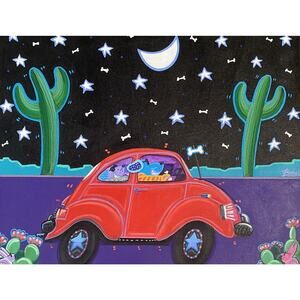 Bob Bonn Original Painting "Beagles In A Beetle” 2005 Signed Artwork 16x20