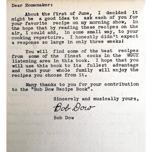 Bob Dow Cookbook WGuy Radio 1250 Presque Isle ME 1960s 1st Edition PB Book E14