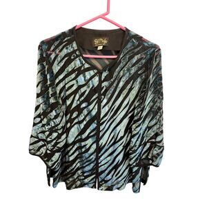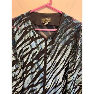 tags: bab macke, wearble art, art to wear, sheer, unique, vintage, 80s, 90s, animal print, button up, cardigan,