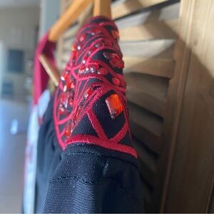 Bob Mackey wearable art red/black slant neck shoulder red bling medallion SZ-SM