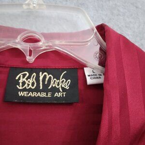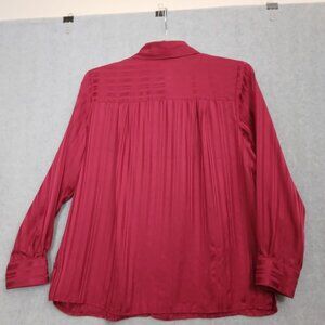 Bob Mackie | 100% Silk Subtle Stripe Blouse Top Cranberry Red | Size L