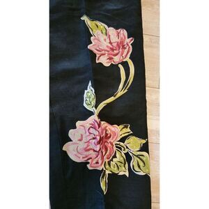 Bob Mackie 12 Linen Blend Pants Floral Art Black Embroidered Lined
