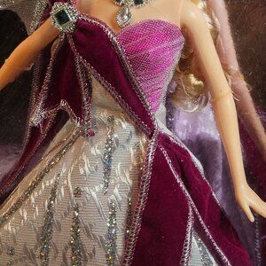 Clad in gorgeous purple, white, silver, and decked out with Barbie jewelry!