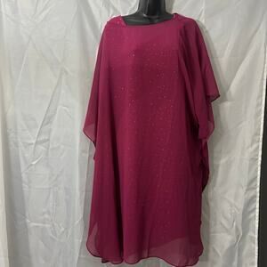 Bob Mackie 2X Women’s Magenta Chiffon Overlay Dress Beaded Evening Cocktail