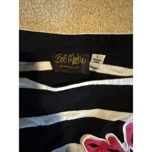 Bob Mackie 3/4 Sleeve Shirt Large Stripes Pink Flower