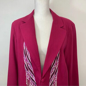 Bob Mackie Blazer Jacket Woman Large Pink Beads Fringe Pockets Wearable Art