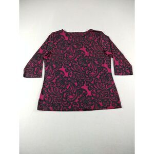 Elevate your wardrobe with this stunning Bob Mackie blouse, perfect for any occasion. The velvet fabric provides a luxurious feel and the lightweight design makes it suitable for all seasons. The round neckline and classic/fitted 3/4 sleeves add a touch of sophistication, while the button and sequin accents give it a touch of glamour.