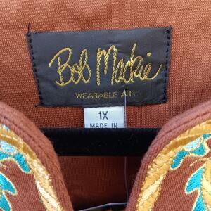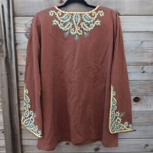 Bob Mackie Brown Embroidered Tunic Top Size 1X NWT Boho