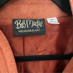 Bob Mackie Wearable Art Burnt Orange Button Fleece Jacket Coat with Floral Embroidery Size XL