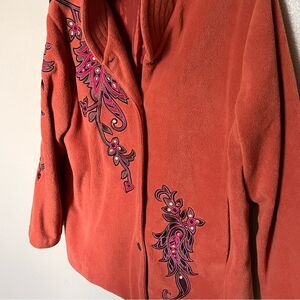Bob Mackie Burnt Orange Button Fleece Jacket Coat with Floral Embroidery Size XL