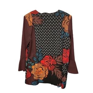 Bob Mackie Button Down Flare Sleeves Colorful Top