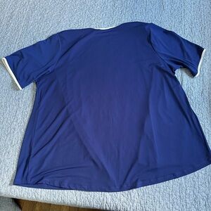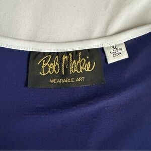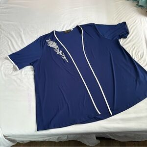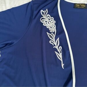Bob Mackie Cardigan Open Front Embroidered Navy & White Short Sleeves Size XL