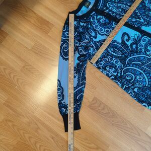 Bob Mackie Cardigan Sweater Womens 1X Blue Black Paisley Wearable Art Button Up