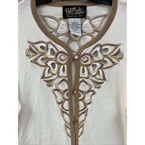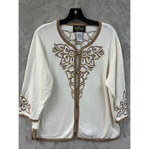 Bob Mackie Cardigan Sweater Women’s 1X Ivory Beige Embroidered Layering Floral