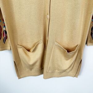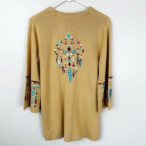Bob Mackie Cardigan Sweater XS Embroidered Feathers Wearable Art Dream Catcher