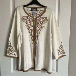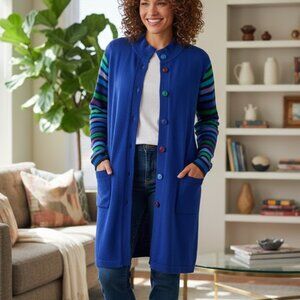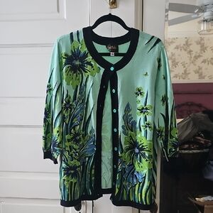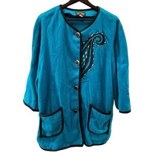 Bob Mackie Cardigan Wearable Art Blue Artsy Wearable Art Boho Resortwear Sz XL