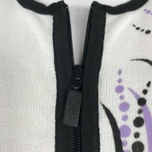 Bob Mackie Womens Cotton Blend White Purple Floral Full Zip Sweater