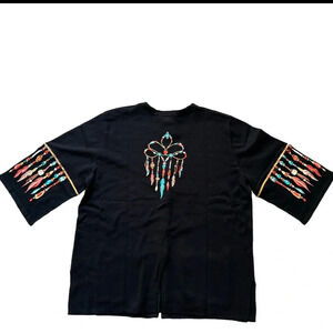Large dreamcatcher on back and bead and feather embroidery on each sleeve