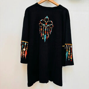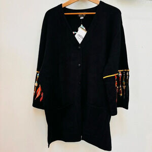 Bob Mackie Dream Catcher Embroidered Cardigan Sweater Wearable Art Black 2X NEW