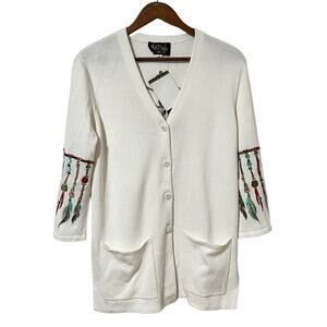 Bob Mackie Dreamcatcher Embroidered Cardigan Size S Ivory Artsy Native American