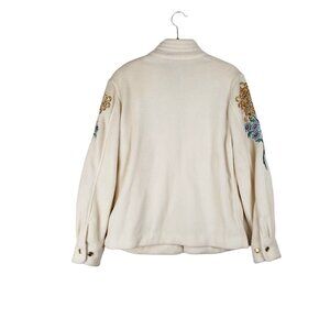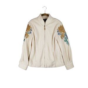 Bob Mackie Wearable Art cream fleece jacket with floral embroidery womens Small
