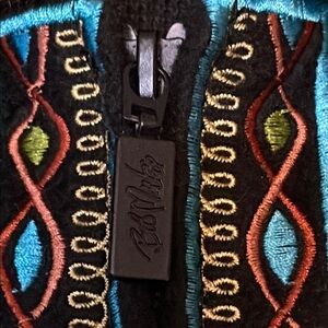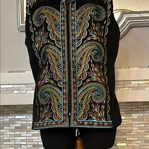 Bob Mackie Embroidered Vest with faux Fur Collar size M