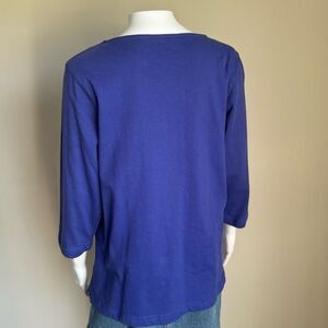 Bob Mackie Embroidered Feathers And Beads Native Top In A Purple/Blue Color, *Shirt Looks More Blue On Mannequin, But It’s Actually More *Purple Like The Rest Of The Photos, 100% Cotton, Size S, Runs Bigger And Will Fit Up To A Size M, Pit~Pit 18”, Length 27” Very Good Pre-Owned Condition