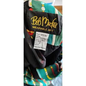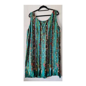 Bob Mackie Green Blue Sleeveless Printed 100% Silk Shift Dress 2X Weareble Art