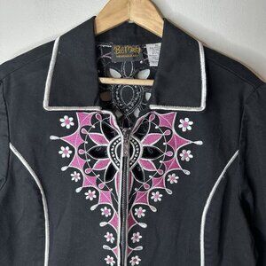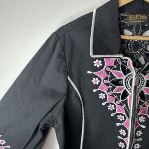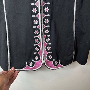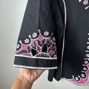 Bob Mackie Jacket Wearable Art Womens XL Black Pink Floral Embroidery Cut Out