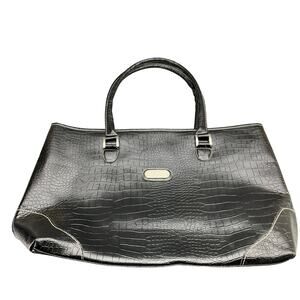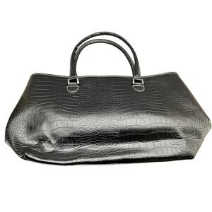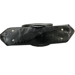 Bob Mackie Large Black Croc Print Zip Top Tote Purse