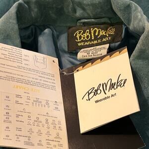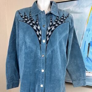 Bob Mackie Leather Jacket Art To Wear Blue Embroidered Suede Size 1X