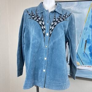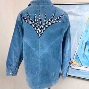Bob Mackie Leather Jacket Art To Wear Blue Embroidered Suede