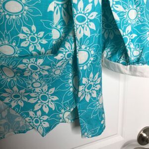 Bob Mackie Wearable Art Womens Turquiose Blue Linen Blend Floral Casual Tunic.