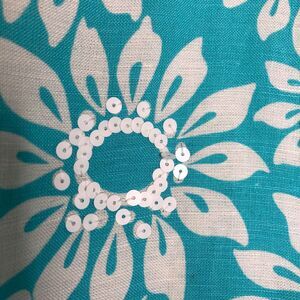 Bob Mackie NWT Wms Wearable Art Linen Blend Floral Turquoise Top Size XL Sequins